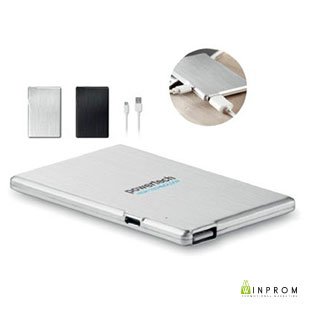 Cargador portátil blanco – negro con detalles plateados. Con salida USB